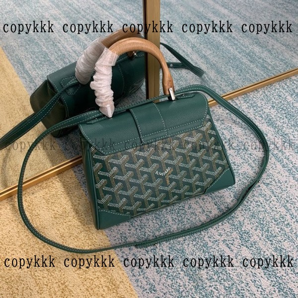 森を纏うような深緑×ウッドハンドル ─ ゴヤール風グリーンミニハンドバッグ